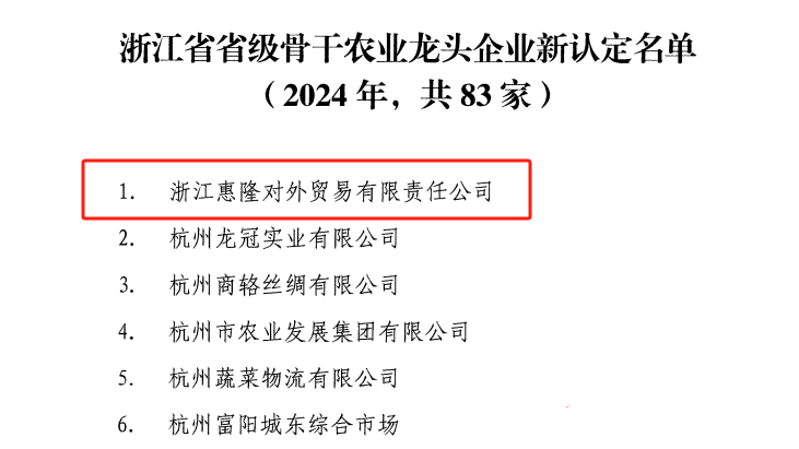 新认定!浙江惠隆获评省级骨干农业龙头企业称号