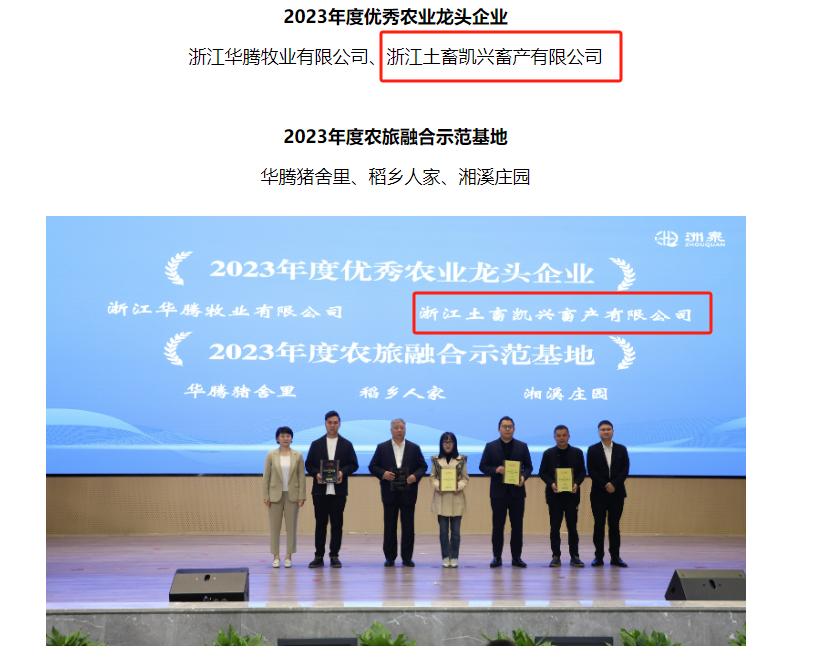 3月23日上午,洲泉镇召开2024年经济高质量发展工作推进会暨拼招商、攻项目、优环境动员部署会,充分肯定了星空网球游戏官网凯兴畜产有限公司(以下称凯兴畜产)过去一年稳健经营和创新发展成果,并授予凯兴畜产洲泉镇2023年度“十佳工业企业”和“优秀农业龙头企业”双重荣誉。