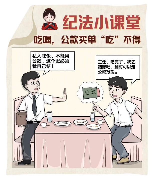 ✦用公款支付亲朋好友聚餐费用或以各种名义公款报销是绝对的“禁区”,莫让“吃吃喝喝”成为人生的绊脚石。