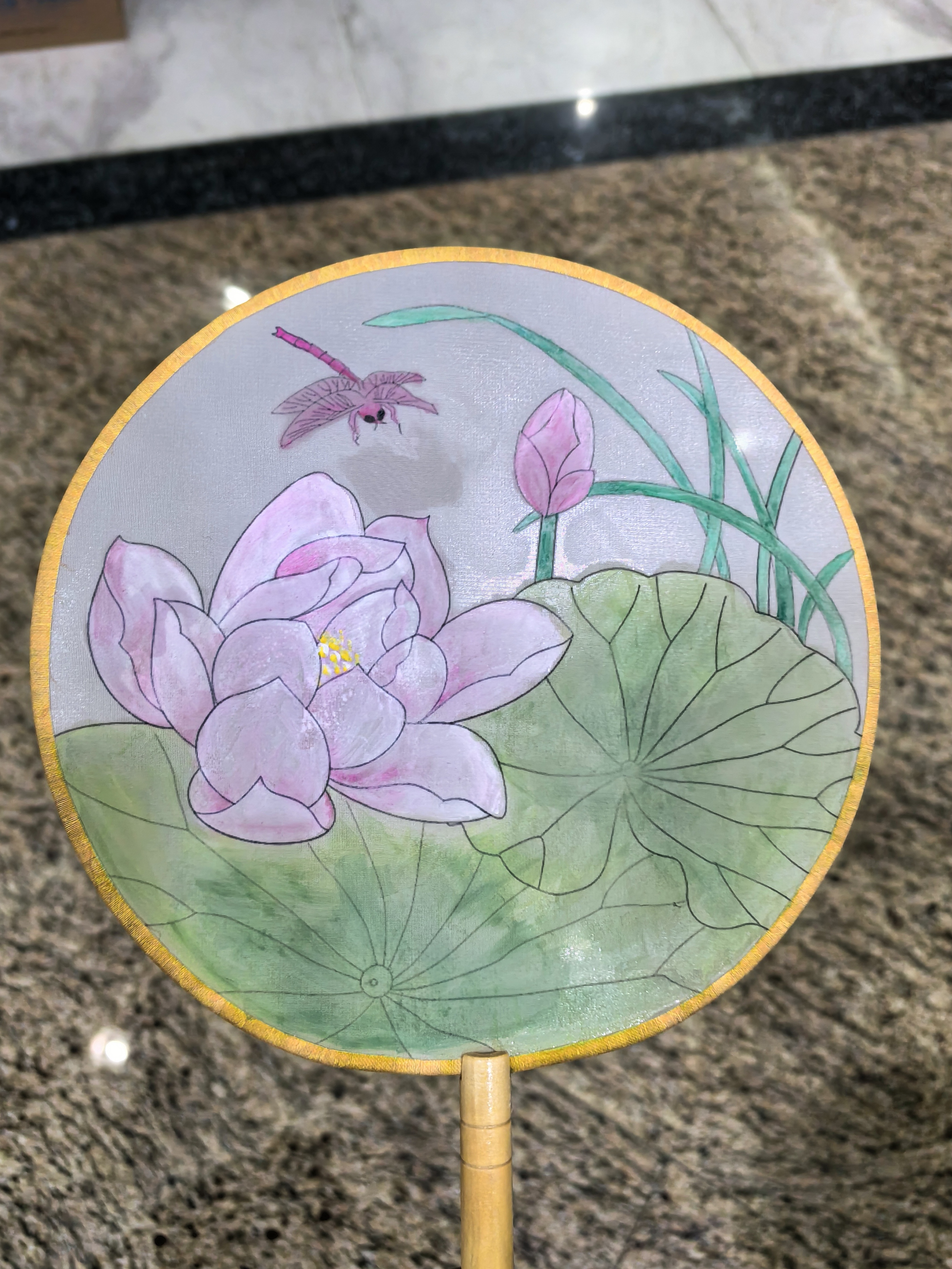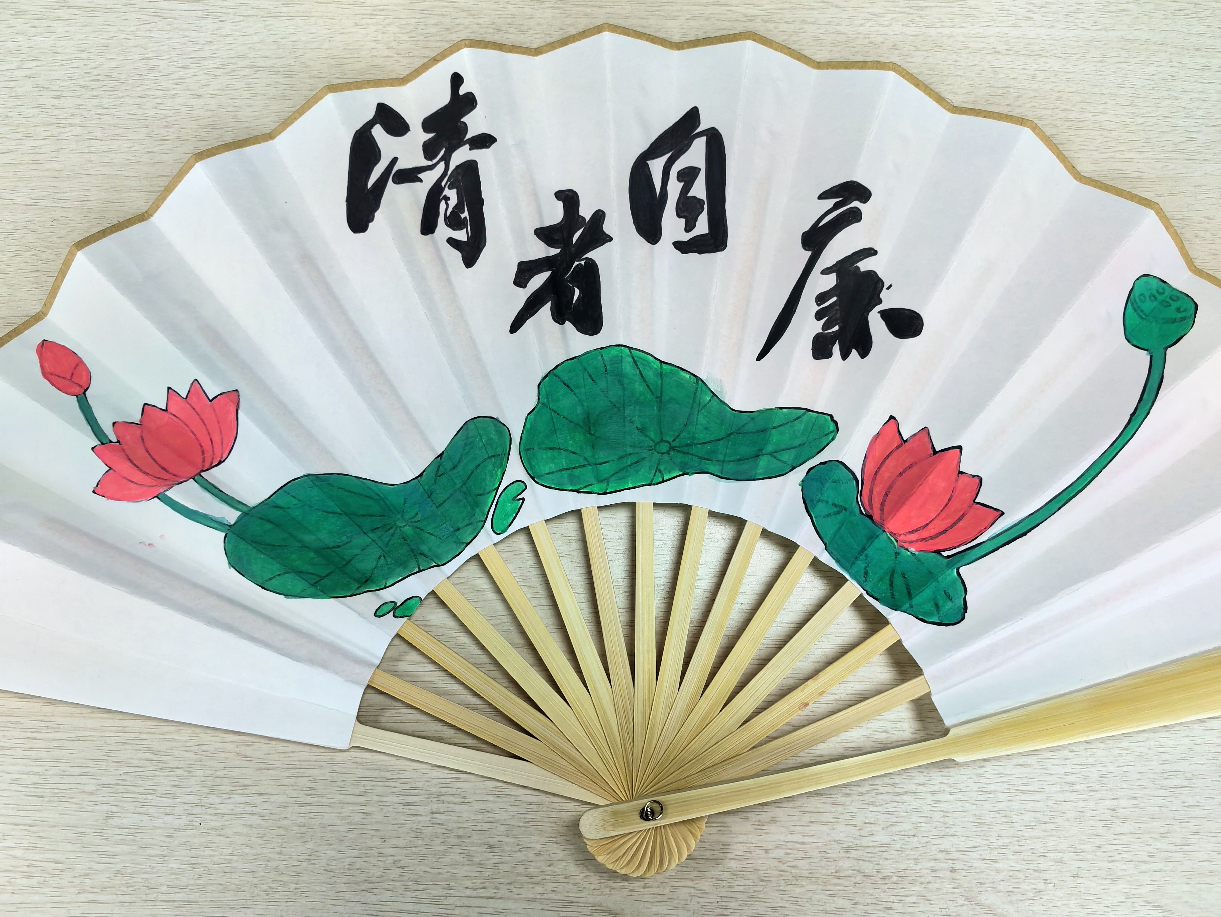 经过一个多小时的绘制,大家纷纷展示自己的团扇作品。有的绘制了青翠的荷叶和洁白的莲花,象征着“出淤泥而不染”的高洁品质;有的则书写了“清者自廉”等字样,表达了对廉洁文化的深刻理解和坚定信念。每一把团扇都那么独一无二、别具风情,凝聚了参与者的心血和创意。