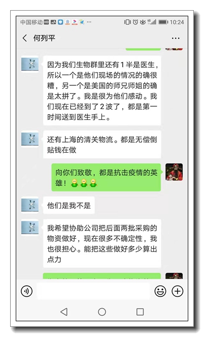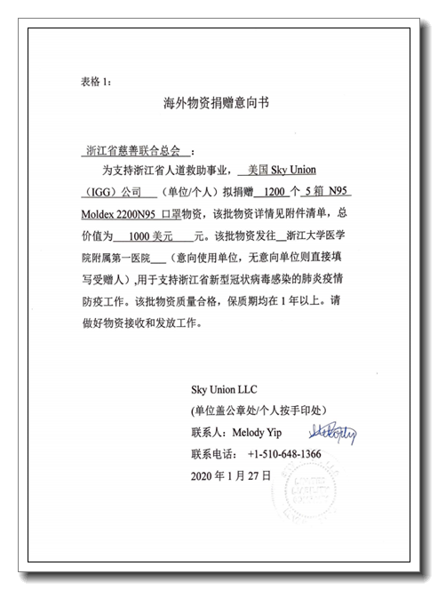 身在海外,心系祖国!面对疫情来袭国内医疗物资告急的状况,浙大生物北美校友会迅速组织募捐活动,并逐步建立起了从货源、资质鉴定、物流、通关、提货送达的交流平台。作为校友会成员,进口三部何列平除了完成公司的进口任务,还承担起了北美校友与浙一医院校友之间的国际桥梁作用,在协助完成海外捐赠医疗物资清关方面发挥了关键作用。目前这些校友捐赠的前两批物资已分别于1月26日、30日运到了浙江邵逸夫医院、浙一等医院, 其中有些到了温州的医院。