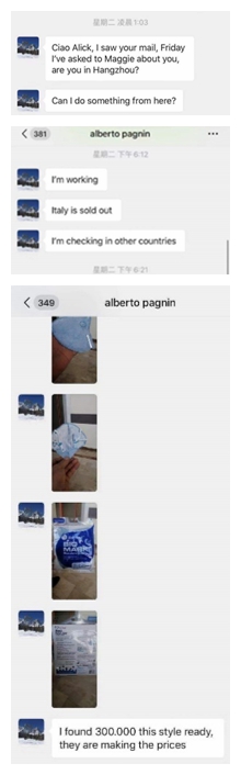 更有意大利等国家的客户主动伸出援手,希望能为我们提供力所能及的帮助。在得知国内急缺口罩之后,客户更主动在意大利国内搜寻口罩,在得知意大利基本缺货以后又连夜联系其它国家的口罩生产商,希望能够组织到口罩等医疗物资,为中国的疫情尽一份自己的力量。