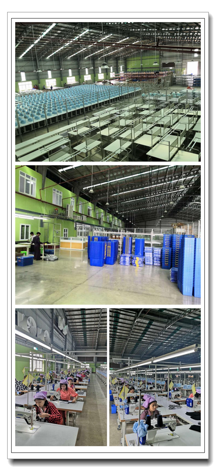 惠元缅甸制衣厂注册200万美元,占地面积8000平方米,共有16条生产线,设计年生产能力100万件。工厂整体布局合理、环境干净整洁、管理科学严谨,投产初始阶段计划共招聘1100人,在产生经济效益的同时,也将很好地解决本地人就业问题,有助于促进中缅两地的沟通与交流。目前厂区各类生产设备已全部安装调试完毕,大部分新招聘员工经过培训后已具备独立上岗操作能力,一起合作的中缅员工友好互助、气氛融洽。