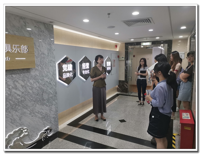 办公室朱雨濛带领新员工参观企业文化俱乐部