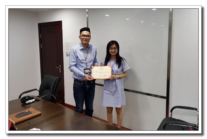 人力资源部孙阳瑯向郑梦莎颁发优秀学员证书