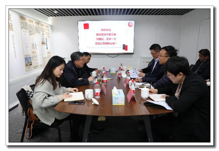 外部董事刘国红、王谦一行先后参观了公司检测中心和企业文化俱乐部,详细了解了公司检测中心运营情况和公司发展历程。座谈会上,张斌董事长对刘国红、王谦董事一行来访表示热烈欢迎,并重点介绍了公司十四五战略规划目标,以及下一步科技引领、科工贸融四轮驱动等改革发展思路。杨跃胜总经理就今年公司落实“六稳”“六保”、转型发展突破、双循环、防风险、整合融合五项重点工作,以及当前面临的主要困难等情况作了介绍。
