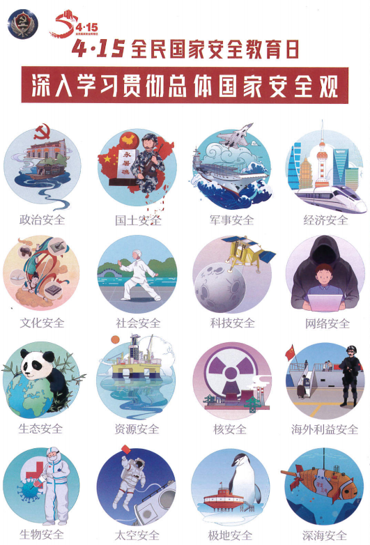 全民国家安全教育日:为增强全民国家安全意识,维护国家安全稳定,2015年7月1日全国人大常委会通过的《中华人民共和国国家安全法》第十四条规定,每年4月15日为全民国家安全教育日。今年的主题是“坚持总体国家安全观,统筹传统安全和非传统安全,为决胜全面建成小康社会提供坚强保障”。国家安全是国家生存和发展最基本、最重要的前提,它关系民生,关系国家稳定,关系社会长远发展。维护国家安全既是国家责任也是公民责任!