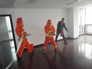 下午4点整,演习总指挥杨跃胜宣布演习正式开始。随着火灾警报铃声的响起,演习指挥部立即启动公司火灾应急预案,所有电梯立即紧急迫降,大楼就近安保巡逻人员持灭火器迅速开展扑救,同时公司微型消防站队员在三分钟内奔赴火灾现场增援。参加演习的部门安全员在听到警报和广播后立即组织本部门员工就近从消防通道迅速有序地疏散到安全地带。