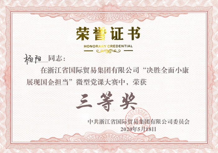 5月18日下午,省国贸集团第四届微型党课大赛在19楼会议厅隆重举行,来自各成员公司的19名参赛选手紧紧围绕“决胜全面小康、展现国企担当”的主题,结合不同岗位、不同业态、不同角度,从细微处谈起,从个人阅历谈起,从公司发展谈起,从理想信念谈起,或表达奋斗心声,或介绍身边典型,或抒发祝福情感,用“演”与“讲”的才情与智慧,让现场观众备受鼓舞,唤起了大家的思考与共鸣,得到了专家评委们的高度肯定,我公司参赛选手杨阳最终荣获大赛三等奖。