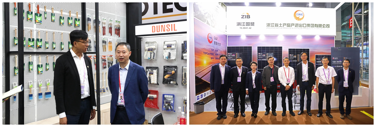 10月15日开展当天,省商务厅副厅长陈志成,省国贸集团党委书记、董事长高秉学,党委委员、副总经理张勇等先后视察公司展位,详细了解公司业务经营情况,鼓励参展人员借助展会主动适应行业新变化、锻造从点到链的能力、优化升级新产品,进一步稳定外贸基本盘、开拓双循环,推动传统外贸转型高质量发展。